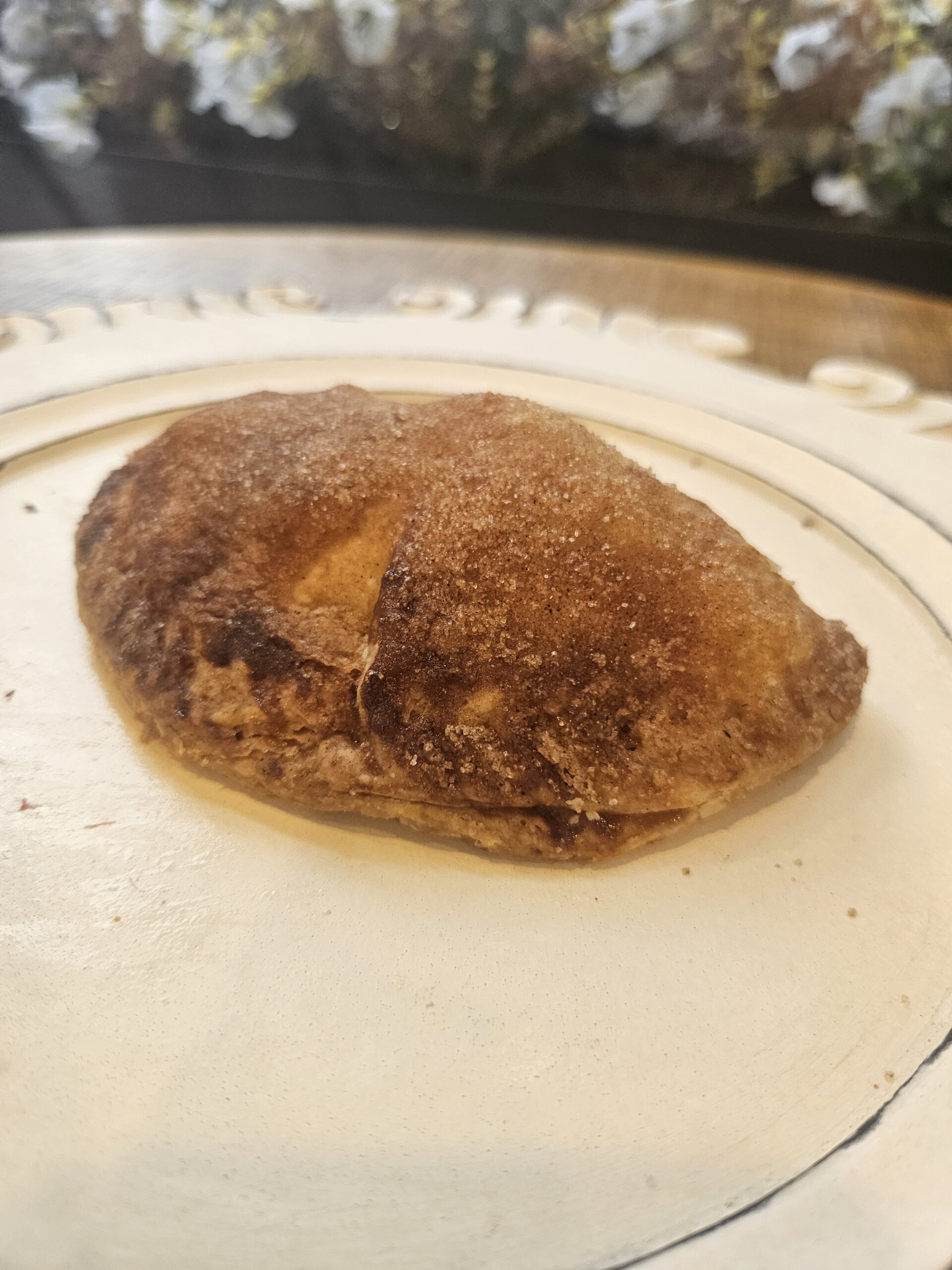 Handmade pie crust stuffed with fresh apple filling, dusted with cinnamon sugar